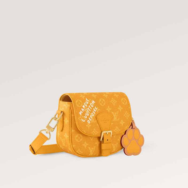 鮮やかなモノグラム ヘリテージ キャンバスにレザーのトリムを施して作られたこのモンスリー メッセンジャー バッグは、フラップに Marque L.Vuitton Déposée のシグネチャーがあしらわれ、ファレル ウィリアムスのパッド入りの犬の足のチャームが付いています。コンパクトなクロスボディシルエットで、毎日の必需品を簡単に収納できます。
