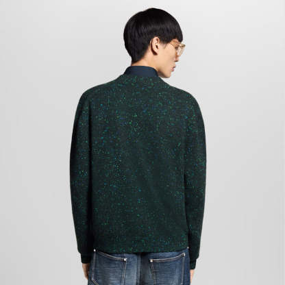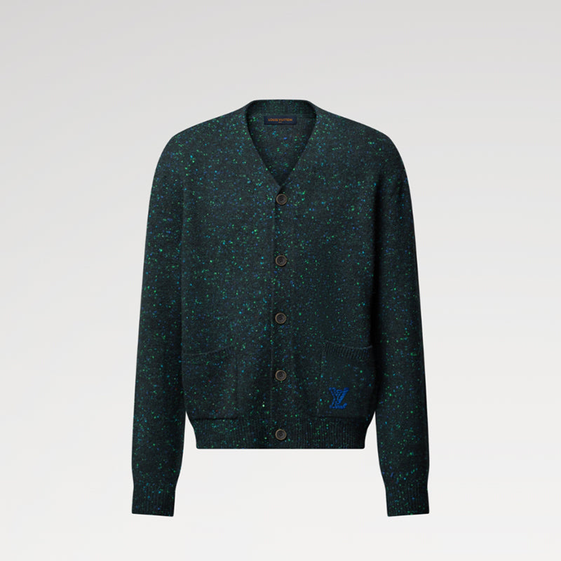 • 深みのあるフォレストグリーンにブルーやグリーン、レッドのはん点模様のアクセントをあしらった柔らかなカシミヤニットのカーディガン。今シーズンのファレル・ウィリアムスとNIGO®のコラボレーションによる日本のクラフツマンシップを讃えたテーマを表現する、コントラストを描くブルーのハンドメイド風の刺繍でLV シグネチャーを左ポケットに施しました。季節を問わず活躍する、軽やかでラグジュアリーなレイヤーアイテムです。