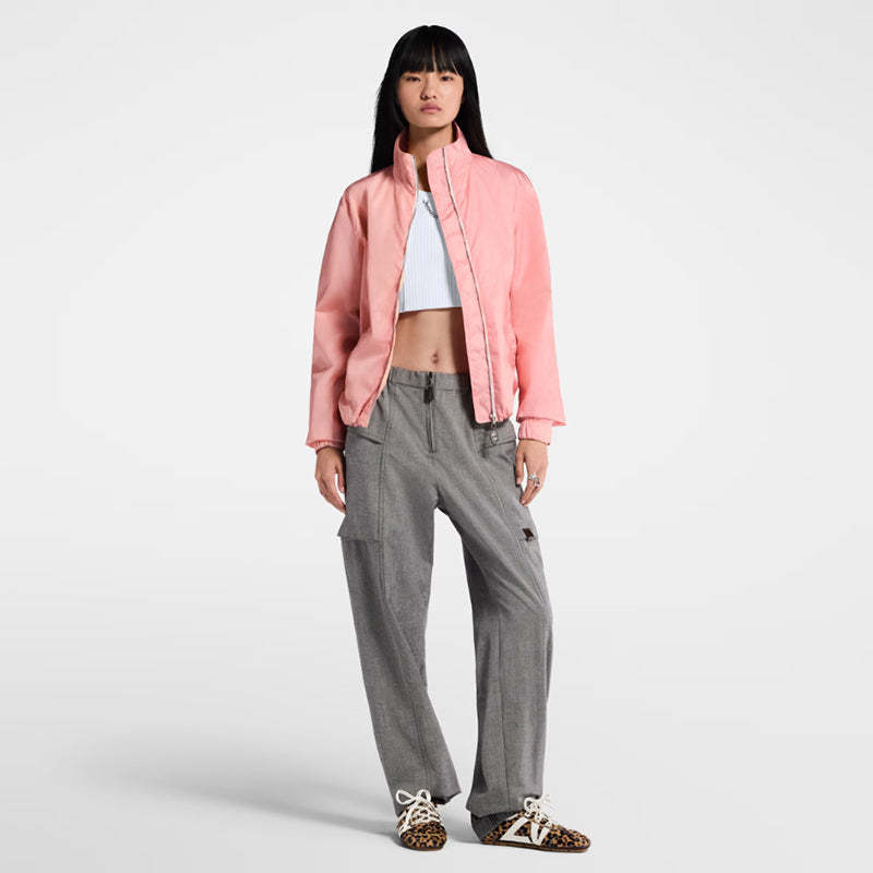 • このスポーティなジャケットは、軽量ツイルナイロンを使用し、幅広のモノグラムジップアップパターンが新しいシーズンにふさわしいフェミニンな雰囲気を演出します。ストレートシルエットに、すっきりとしたタートルネックとフロントジップアップを組み合わせ、袖口はスナップボタンで調節可能です。
