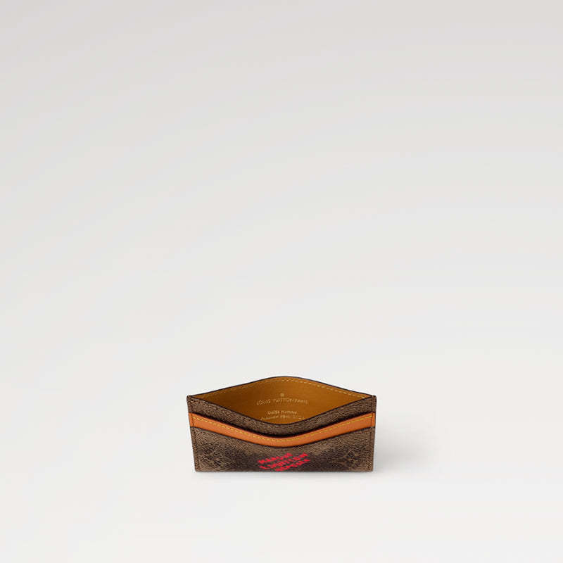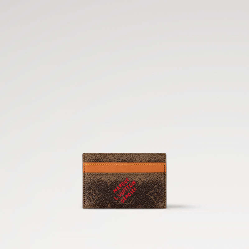 • モノグラム・ダスト キャンバスがヴィンテージな雰囲気を演出する「ポルト・カルト・ダブル」。エクスクルーシブなデジタル・プリント技術を用いてトロンプ・ルイユ(騙し絵)風のエイジング加工を施し、ユニークな表情に仕上げました。フロントに個性を添える「Marque L.Vuitton Déposée」プリントも魅力。あらゆる種類のカードを収納できる4つのカードスロットとセンターポケットを備えています。