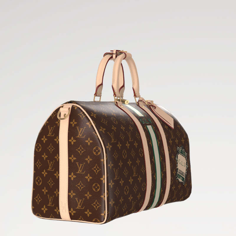 • 「モン・モノグラム」コレクションの対象製品として登場した「キーポル・バンドリエール 45 モン・モノグラム」。ラインやイニシャル、「Louis Vuitton」シグネチャーのパッチなど多彩なプリントでパーソナライズできます。軽量で収納力に優れたバッグ「キーポル」はまさにエレガントな旅の象徴そのもの。そのタイムレスなシェイプと定番のモノグラム・キャンバスは今も昔も変わらずモダンであり続けます。