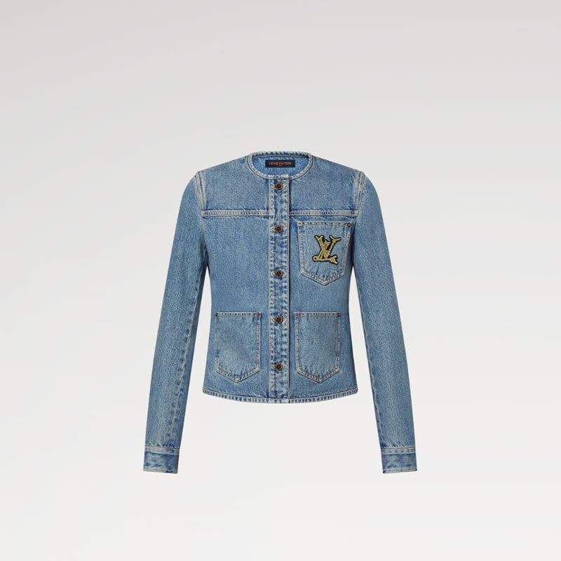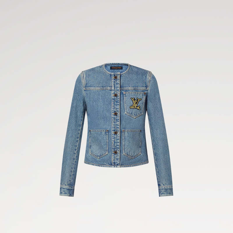 デニムにイエローのトップステッチを施し、カジュアルで構築的なルックに再解釈したエレガントなフィットジャケット。ボタンタブにはプレイフルな印象を添えるジグザグステッチを、前面の3つのパッチポケットの1つには、メゾンの旅の伝統にオマージュを捧げる今シーズンならではのマリンスタイルのLV イニシャルをあしらいました。