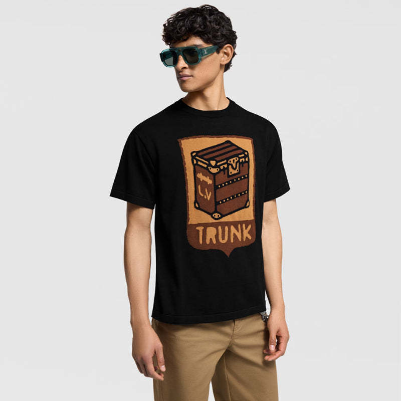 • アイコニックなルイ・ヴィトン トランクの色合いを想わせるショートスリーブのクルーネック。フロントには遊び心溢れるインターシャ(象嵌細工)の技法でトランクを描き、背面にはモノグラム・フラワー モチーフをあしらいました。目の詰まったコットンニットで柔らかく仕立てた幅広いシーンで活躍するアイテムです。定番のジーンズやチノパンにフレッシュでクリエイティブなひねりを加えます。