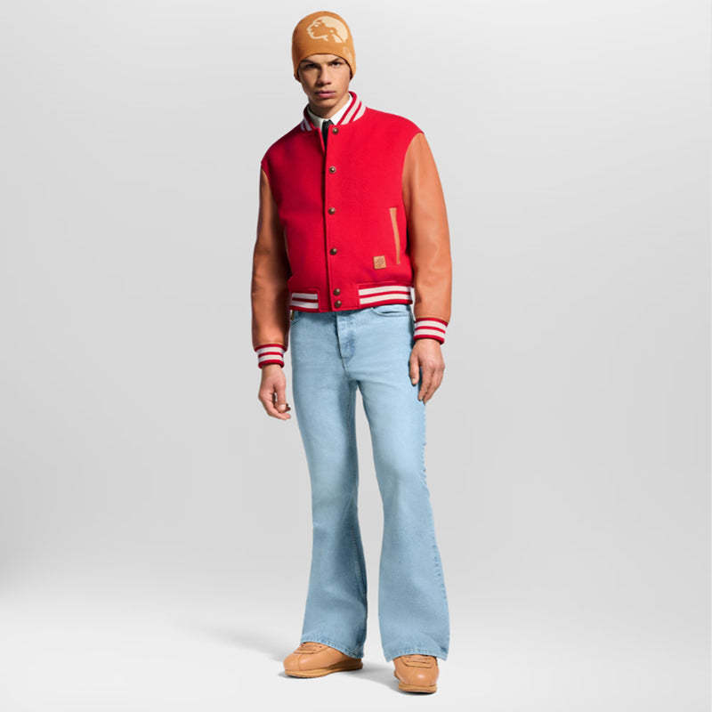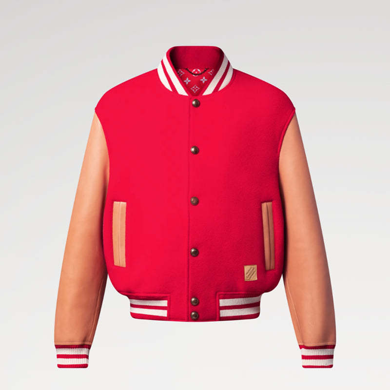 • 2025年秋冬コレクションのランウェイショーで発表されたこのベースボールジャケットは、クラシックなスタイルにエレガンスを融合させています。印象的なシープスキンボディにカウハイドレザーの袖を組み合わせ、ルイ・ヴィトンのトランクやハンドバッグに使用されているVVNレザーへのオマージュを表現。ライニングにはモノグラム柄が全面にあしらわれ、フロントには「L.Vuitton Déposée」のレザーパッチがアクセントになっています。
