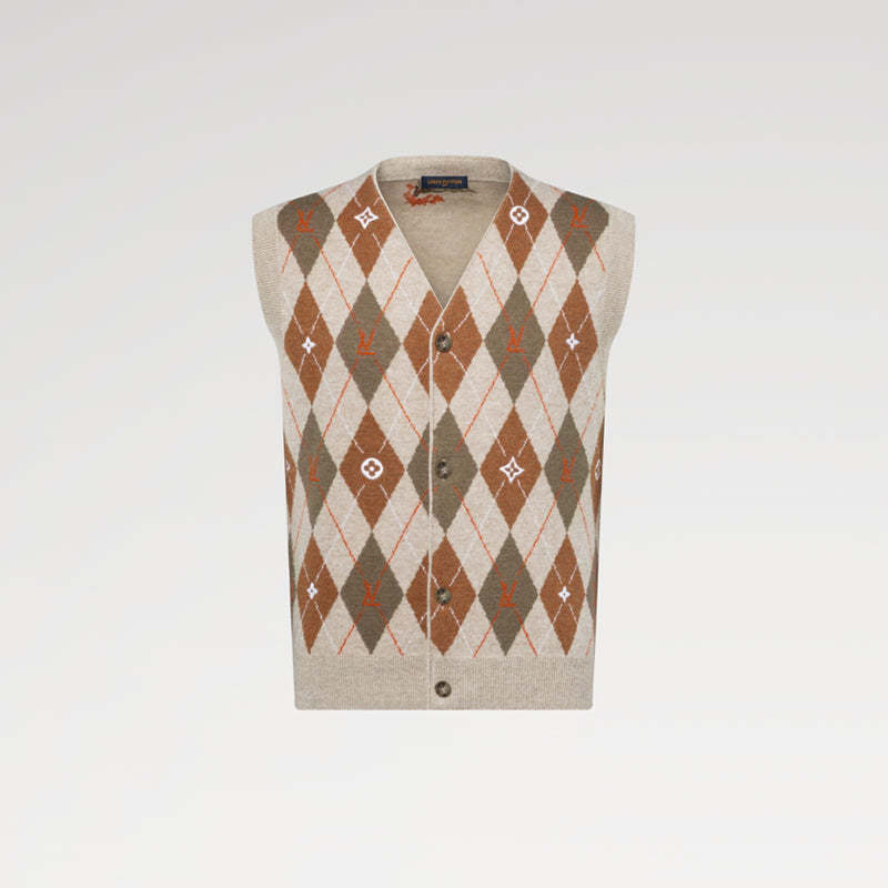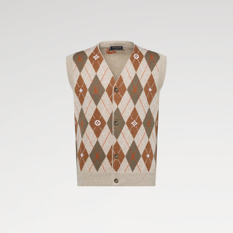 LOUIS VUITTON アーガイル インターシャ カーディガンベスト