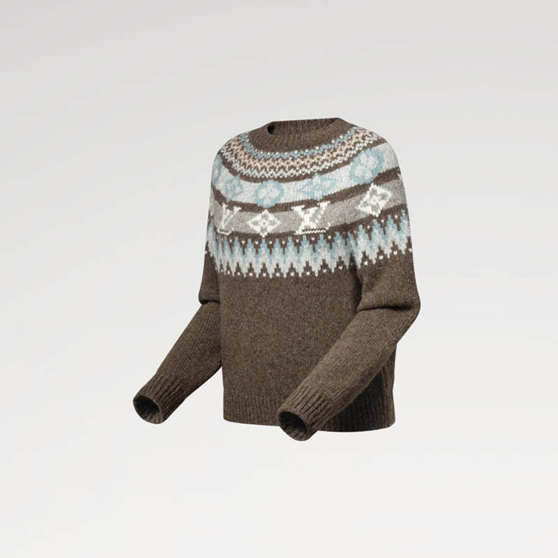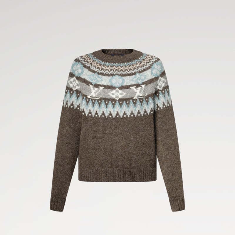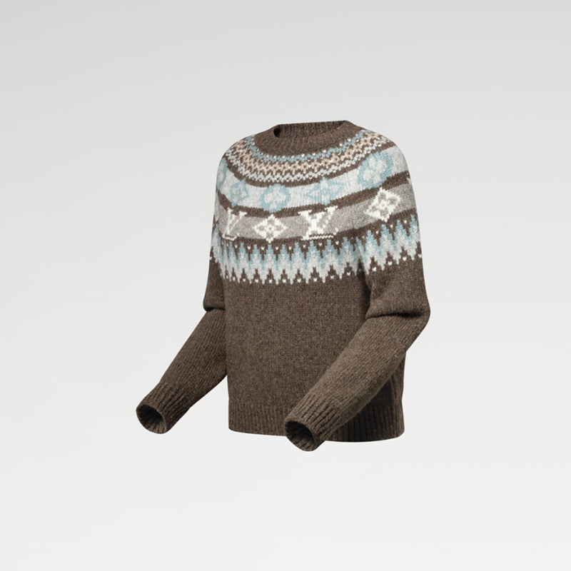 • タイムレスなアフタースキー風の魅力を放つ、ソフトで暖かいアルパカ混紡のプルオーバー。ショルダー周りにはカラフルでグラフィカルなモチーフと「Louis Vuitton」シグネチャーがあしらわれています。レギュラーフィットにクルーネックを組み合わせ、裾はリブ編みにし、カジュアルで快適な着心地に仕上げました。