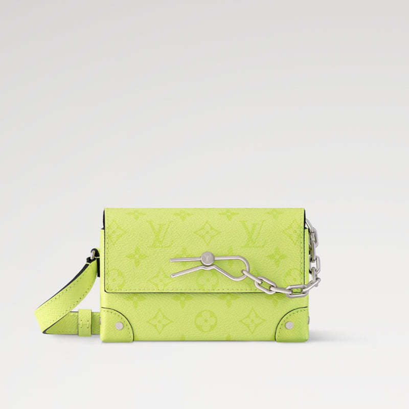 • メゾンのアイコニックな「スティーマー・トランク」から着想を得た「スティーマー・ウェアラブル ウォレット」。色鮮やかなモノグラム・キャンバスとタイガ・レザーを使用し、一目でメゾンの個性が見て取れるチェーン & ピンの留め具をあしらいました。毎日の必需品を持ち運ぶのにぴったりなサイズで、ファスナー式ポケット付きの内装が魅力。調節可能なストラップでショルダーバッグやクロスボディバッグとして快適に使用できます。