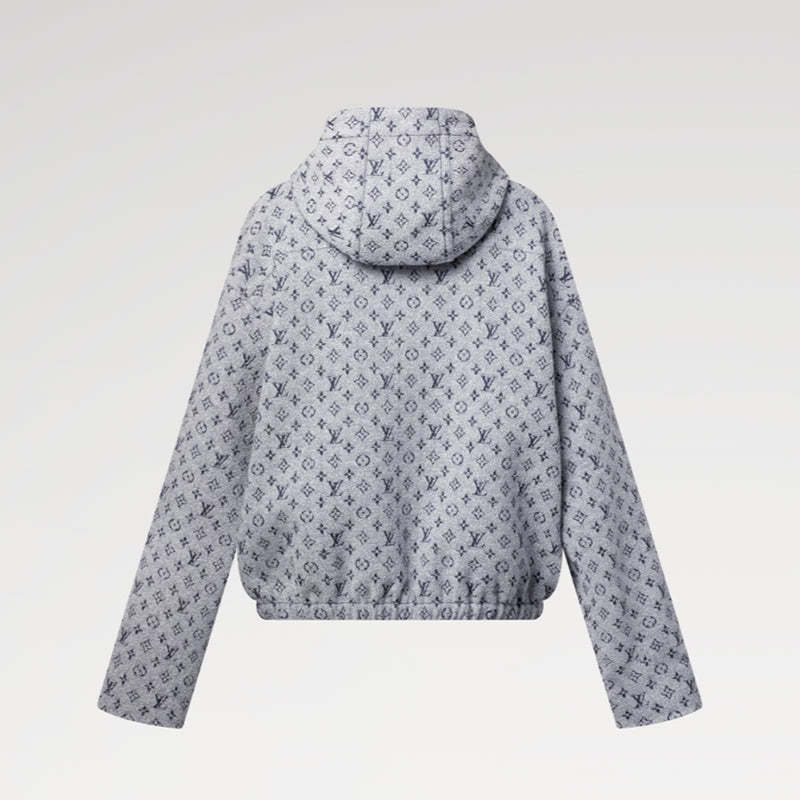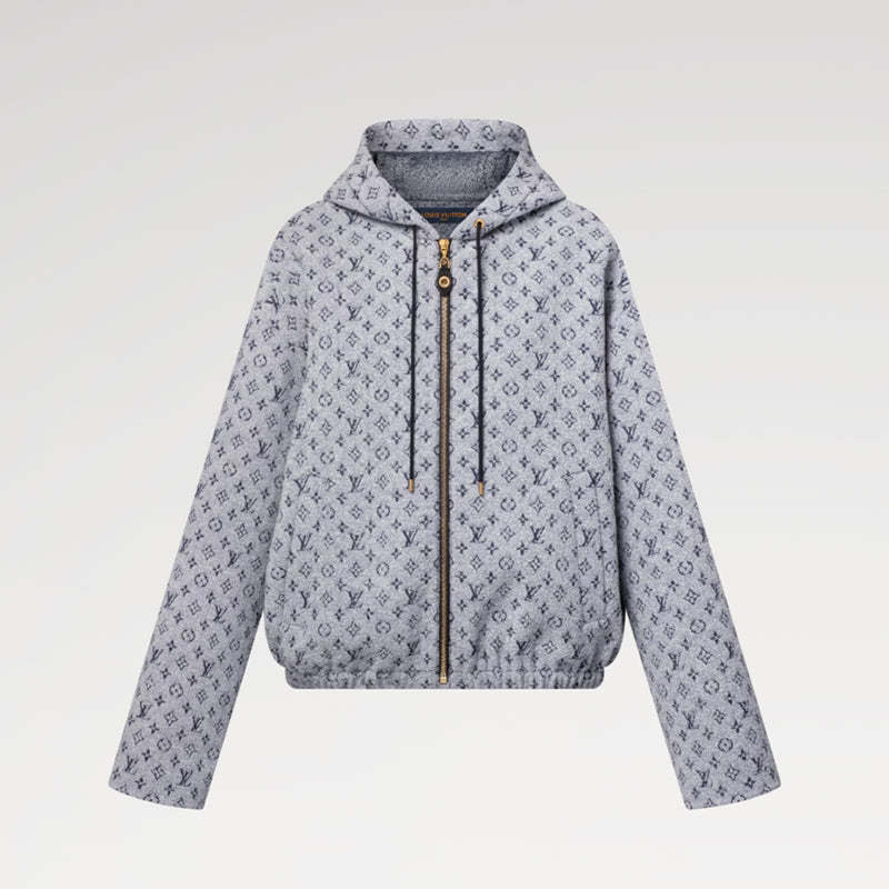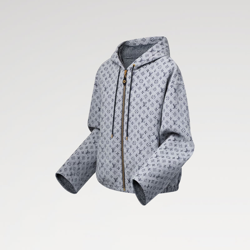 控えめなブークレ仕上げを施した着心地のよいウール混紡素材でアップデートしたカジュアルなフーディ。全面にプリントしたアイコニックなモノグラム・モチーフが特徴です。ボディのボリューム感を引き立てる伸縮性のあるウエストバンドが快適なフィット感を実現し、コントラストを効かせたドローストリングとフロントファスナーがグラフィカルでスポーティなタッチをプラス。
