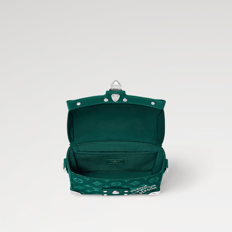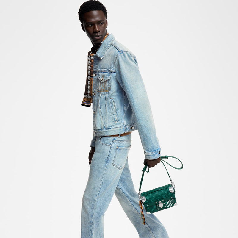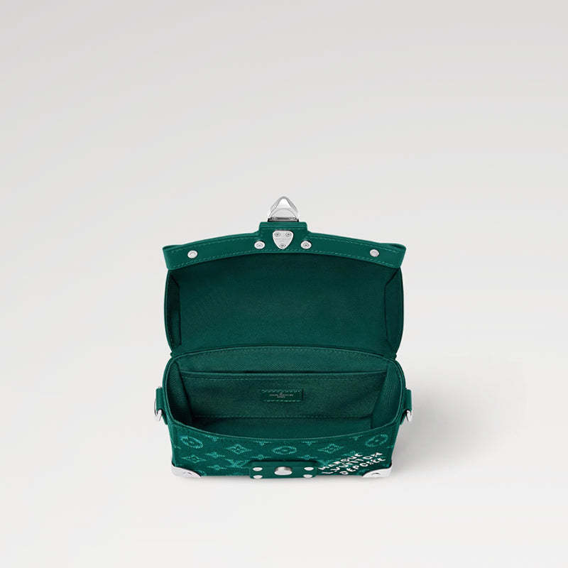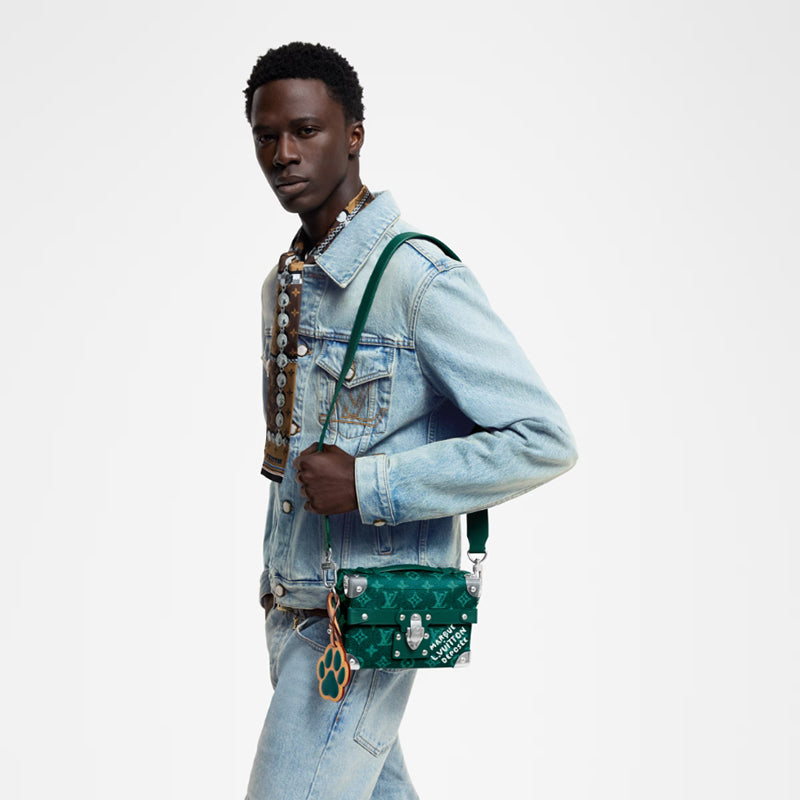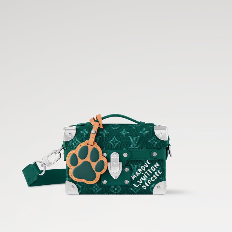 鮮やかなモノグラム ヘリテージ キャンバスで作られ、ダミエ キャンバスに Marque L.Vuitton Déposée のシグネチャーがあしらわれたこのソウル トランク クロスボディ バッグは、ファレル ウィリアムスのクリエイティブなメゾンへの解釈を表現しています。コンパクトな形状に金属コーナーとロックが特徴で、取り外し可能な犬の足型バッグにはLVの文字が刻まれています。