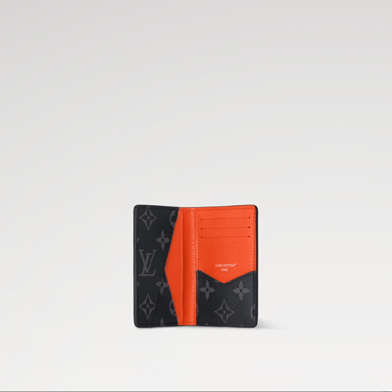 • モノグラム・エクリプス キャンバスを使用したカードケース「オーガナイザー・ドゥ ポッシュ」。大胆なカラーのレザーバンドをアクセントとして背表紙に添え、フレッシュな印象に仕上げました。大抵のポケットにすっきり収まる小ぶりなサイズのアイテムは、内装に5つのポケットと3つのカードスロットを完備。背面には機能的な外ポケットを配しました。