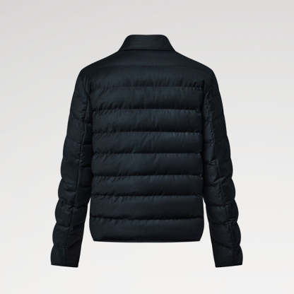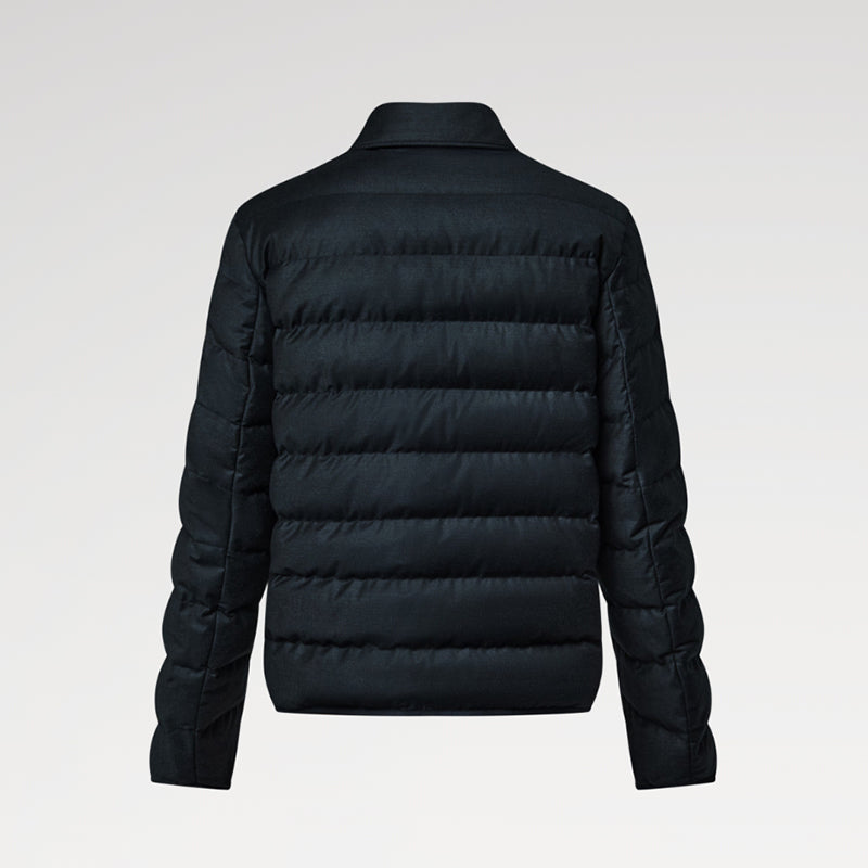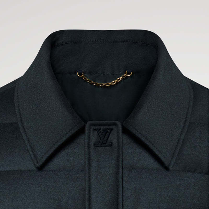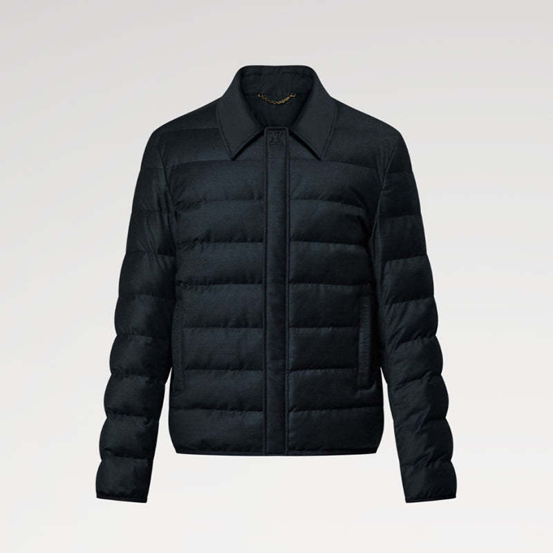 暖かくサステナブルなEcodown©に軽くキルティング加工を施したスマートなブルゾン。季節の変わり目のフォーマルな装いとして、アウトドアのレイヤードスタイルを演出します。撥水加工を施したタイムレスなダークネイビーのウール&シルクの混紡生地を使用し、プラケットの上部にメタルのLV スナップボタンを配しました。各ポケットにあしらわれた同系色の「LOUIS VUITTON」の刺繍で印象的な仕上がりに。