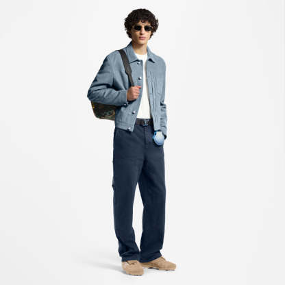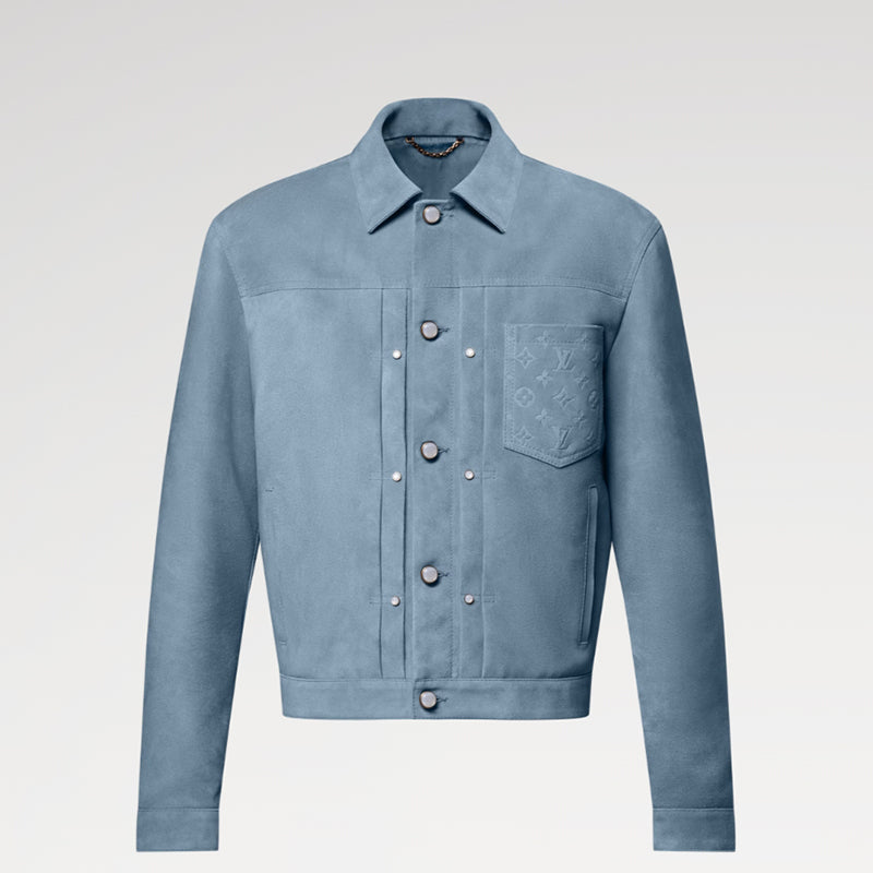 タイプ II デニムトラッカーにシックなひねりを加えたスエードのジャケット。毎日の装いに贅沢なアクセントを添える、スモーキーなブルーの色合いに仕上げました。モノグラム・パターンをデボス加工で施した胸元のパッチポケットがしなやかなスエードレザーを引き立て、「Marque L. Vuitton Déposée」シグネチャーのレザーパッチが背面を彩ります。パール風ボタンとリベットによりダンディな印象に。