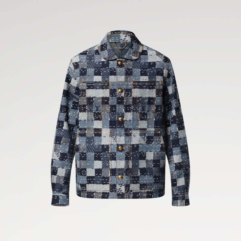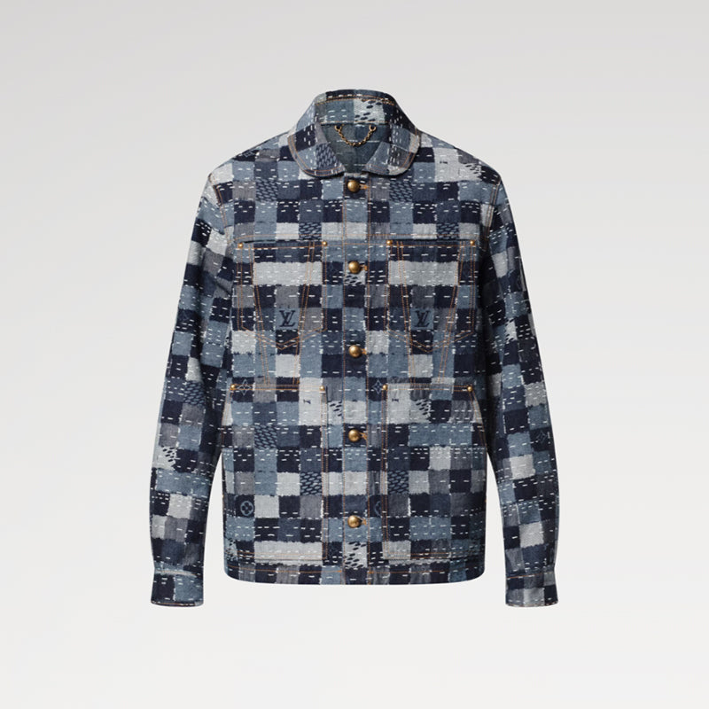 ファレル・ウィリアムスとNIGO®のコラボレーションにより2025秋冬コレクションに登場した、リッチなディテールが際立つデニムのワークウェアブルゾン。NIGO®の故郷である日本の伝統工芸から着想を得て、パッチワーク風のダミエ・ジャカードをあしらいました。ラウンドカラーが実用的なシルエットにエレガントなアクセントを添え、ゴールドカラーの半球型メタルボタンが華やかさをプラス。揃いのパンツと合わせれば、ランウェイさながらの印象的なルックに。