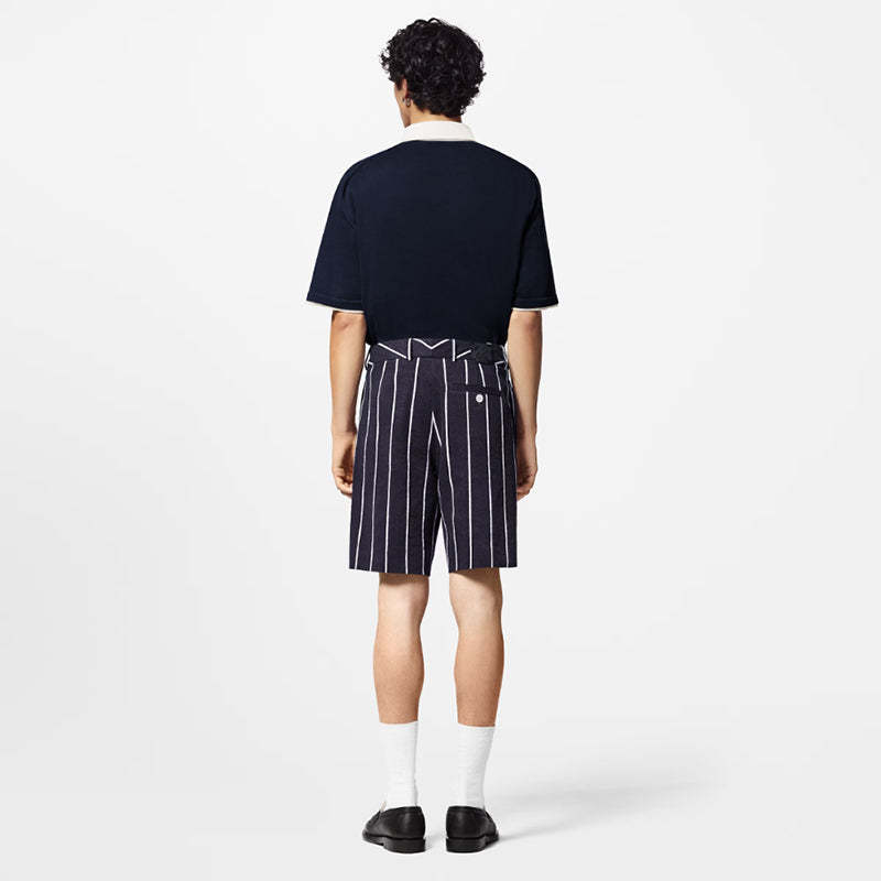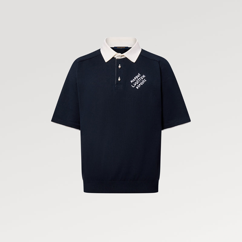 上質なコットン混紡素材で編んだこのポロシャツは、ドレスシャツの襟で仕立てられています。フロントに Marque L.Vuitton déposée のロゴが刺繍され、上部には LV イニシャルをあしらったパール光沢のあるボタンが付いており、クラシックなマリンルックに簡単にマッチします。