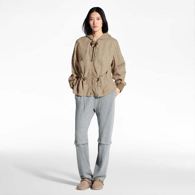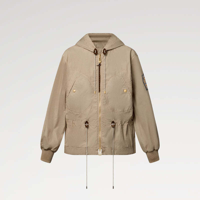 ピーチスキン加工を施した柔らかで軽量なコットンを使用したパーカ。さまざまなスタイリングを楽しめる洗練されたマストハブアイテムです。フードやリブ編みのカフ、胸元の2つの大ぶりなポケットがスポーティなスタイルを際立たせます。ドローストリングで絞るとシックなペプラムシルエットになるウエストや、左袖にあしらったルイ・ヴィトンのトラベルパッチが特徴。